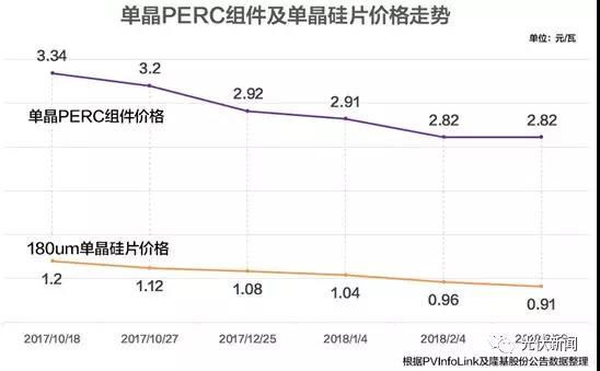 2018年2月23日,隆基宣布國內(nèi)價格下調(diào)0.25元/片,由4.8元/片調(diào)整到4.55元/片。