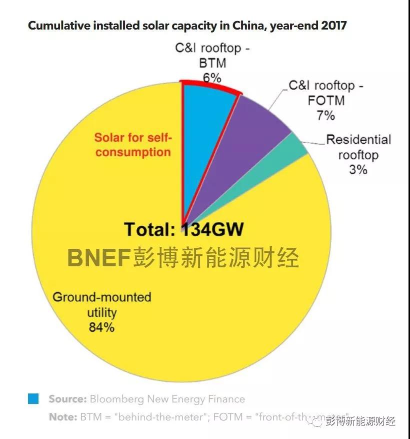 到2017年底,中國(guó)大陸光伏裝機(jī)總量達(dá)134GW(BNEF統(tǒng)計(jì)口徑),其中屋頂裝機(jī)(含工商業(yè)與居民)達(dá)到21GW,自發(fā)自用工商業(yè)屋頂裝機(jī)達(dá)8GW。