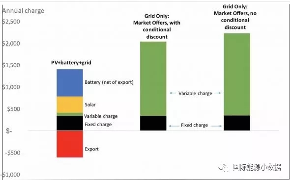 那么,如果澳大利亞居民無(wú)法忍受如此高昂的電網(wǎng)供電價(jià)格,自家安裝5千瓦的光伏系統(tǒng)(價(jià)格5500澳元,壽命20年),再加上特斯拉第二代電池包(Tesla Powerwall 2,容量13.5千瓦時(shí),2018年售價(jià)11,075澳元),光伏余電上網(wǎng)電價(jià)收入0.16澳元/千瓦時(shí),那么這一套系統(tǒng)每年的支出費(fèi)用明顯低于電網(wǎng)電價(jià)。