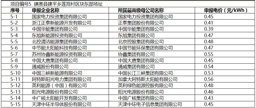 次低電價(jià)為0.41元/千瓦時(shí),投出該電價(jià)的企業(yè)為中廣核、浙江正泰!