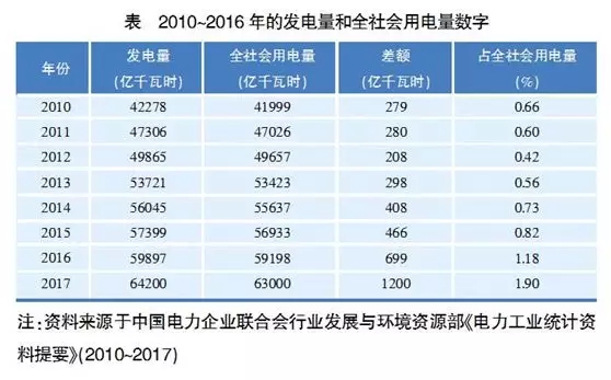 2010年~2017年的發(fā)電量和全社會(huì)用電量數(shù)字如下表: