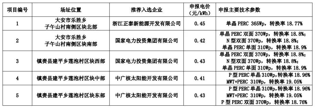 從中標企業(yè)申報的主要技術(shù)參數(shù)中不難看出,組件的轉(zhuǎn)換效率均超過18.7%。而18.7%也是應(yīng)用領(lǐng)跑者項目中單晶組件獲得滿分的效率標準。