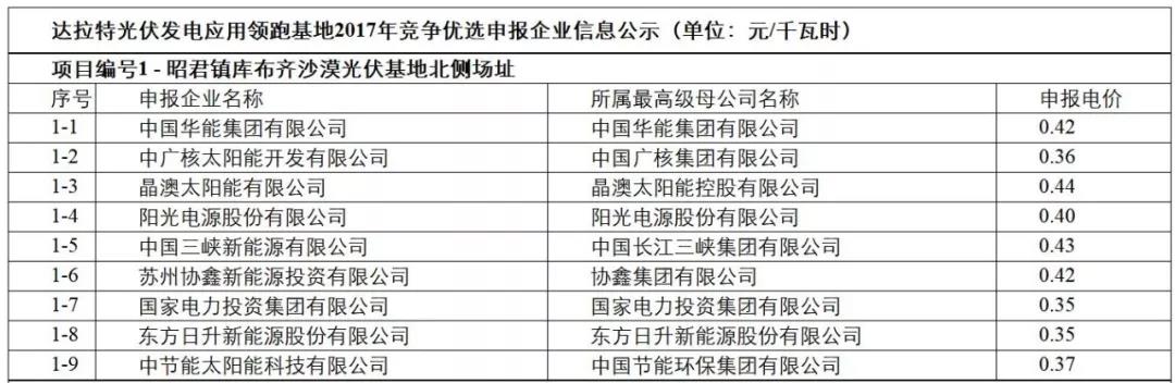 2018年3月15日,第三批領(lǐng)跑者基地之一的——達拉特旗公布第一批500MW投保情況。其中,特變電工最低0.32元/度、正泰最高0.47元/度。