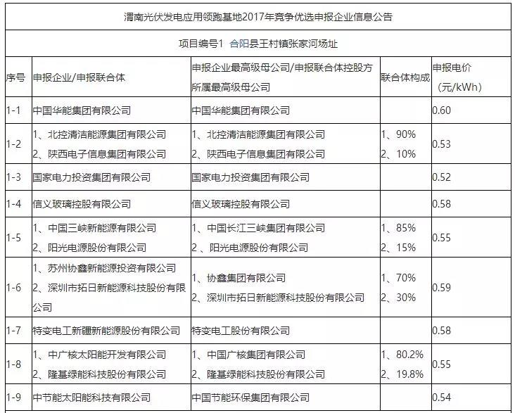2018年3月15日,第三批領(lǐng)跑者基地之一的——渭南公布第一批500MW投保情況。其中,國電投最低0.48元/度、晶澳最高0.64元/度。
