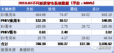 2018年前2個月2.35GWh的總裝機量中,方形電池以1.71GWh占比72.52%,在三種形狀的鋰離子電池裝機量中占絕對優(yōu)勢;圓柱電池以382.43MWh占比16.25%,排名第二,軟包電池以264.47 MWh占比11.24%,排在最后。相比于去年1-2月,方形電池的占比在加大,圓柱電池和軟包電池占比都在減少。