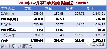 2、2018年前2個月鋰電裝機2.35GWh,同比大增259.54%