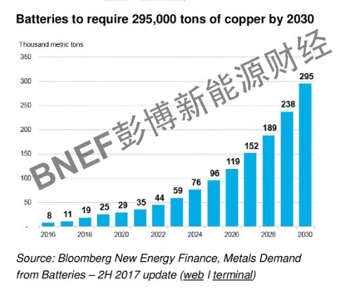 根據(jù)彭博新能源財經(jīng)的預(yù)測,到2030年電動汽車電池所需的銅原料