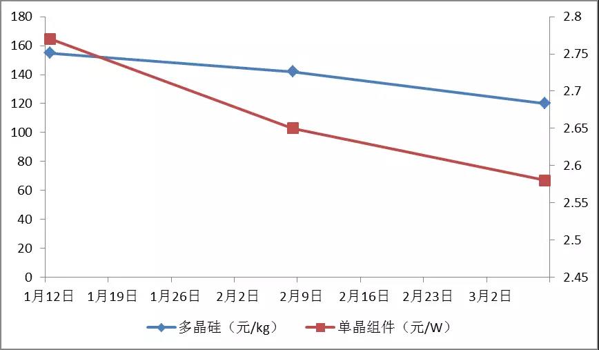 圖 1 2018年1-3月光伏產(chǎn)品價(jià)格變化情況