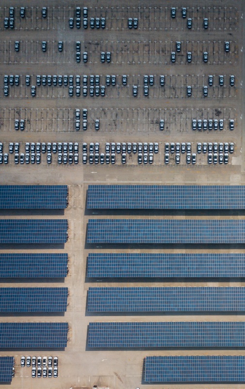 圖為3月26日拍攝的上海大眾汽車南京分公司廠內(nèi)的光伏車棚(無人機(jī)航拍)。