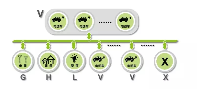在這樣的系統(tǒng)里面,不得不提到車的作用。電動(dòng)汽車是未來的發(fā)展趨勢(shì),這里引用國(guó)網(wǎng)提出的電動(dòng)汽車V2G的概念,V2G就是車對(duì)電網(wǎng)放電的意思,引進(jìn)直流母線之后,就不用先V2G,然后再G到負(fù)荷了,直接就可以V2H或者V2L,這樣就形成了一個(gè)新的概念 “V2X”,即通過直流側(cè)的交互,做到源-網(wǎng)-荷-儲(chǔ)-車的友好互動(dòng),實(shí)現(xiàn)車對(duì)多種能源直接充放電的管理。