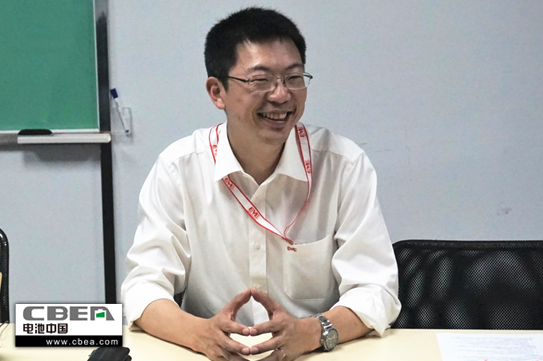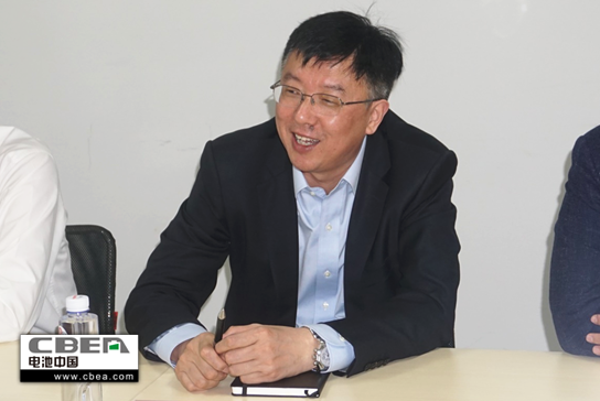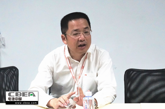 圖為億緯鋰能高級(jí)副總裁劉建華參與調(diào)研座談