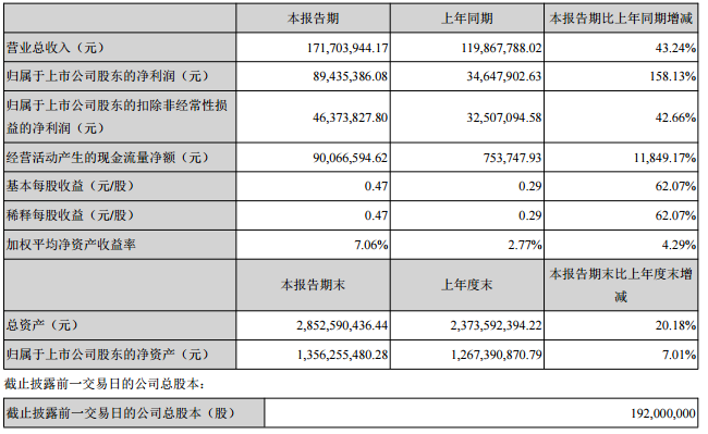 中國(guó)儲(chǔ)能網(wǎng)訊:4月10日,星源材質(zhì)發(fā)布了一季度報(bào)告,報(bào)告顯示,公司實(shí)現(xiàn)營(yíng)業(yè)收入1.72億元,較上年同期增長(zhǎng)43.24%,歸屬于上市公司股東的凈利潤(rùn)8943.54萬(wàn)元,較上年同期增長(zhǎng)158.13%。