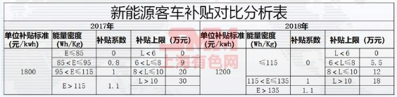 中國(guó)新能源汽車補(bǔ)貼政策,長(zhǎng)期對(duì)技術(shù)路線和產(chǎn)業(yè)方向做指引。通過(guò)對(duì)比2018年最新的新能源客車的比較如下: