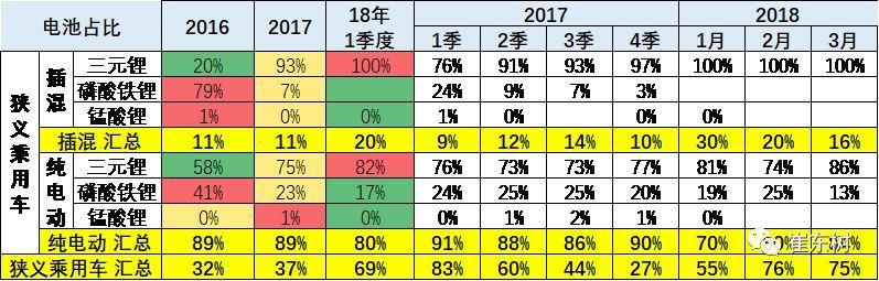 2018年一季度的三元電池占比達(dá)到65%,要17年的45%提升20個(gè)百分點(diǎn),17年較16年的22%也提升了20個(gè)百分點(diǎn)。而錳酸鋰和鈦酸鋰的需求逐步減弱。 4 、3月的乘用車電池需求特征