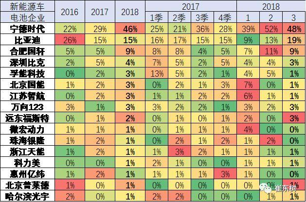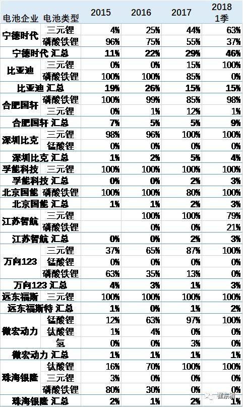 專用車的三元化趨勢(shì)很明顯。17年的三元電池的裝車量達(dá)到68%的占比,而16年的占比是37%。18年三元提升的趨勢(shì)相對(duì)是合理的狀態(tài),3月達(dá)到94%也是很好的趨勢(shì)。 5 、歷年電池企業(yè)需求特征