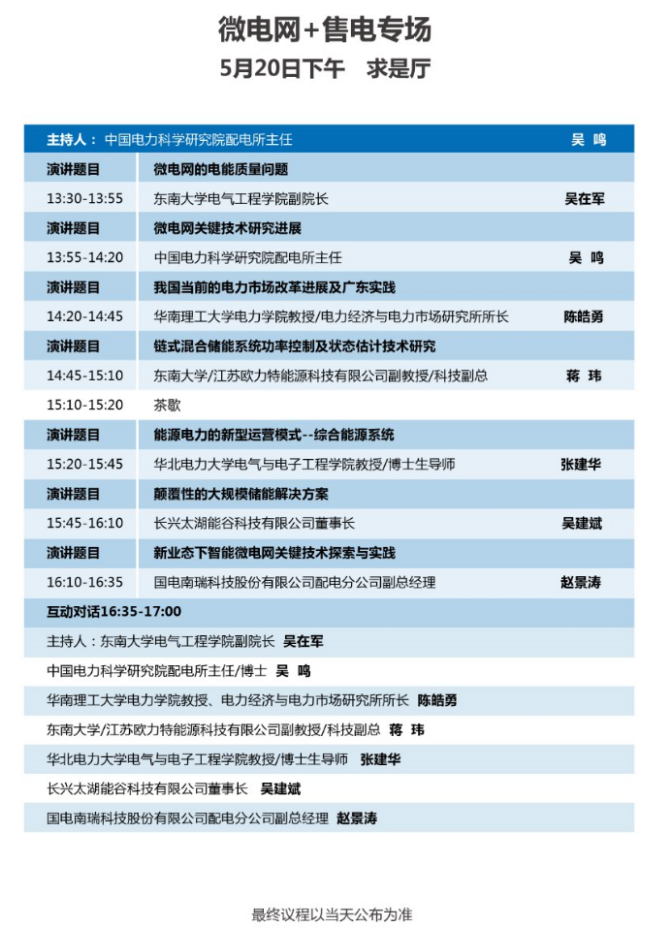 以下為微電網(wǎng)與售電專場(chǎng)大會(huì)議程表。
