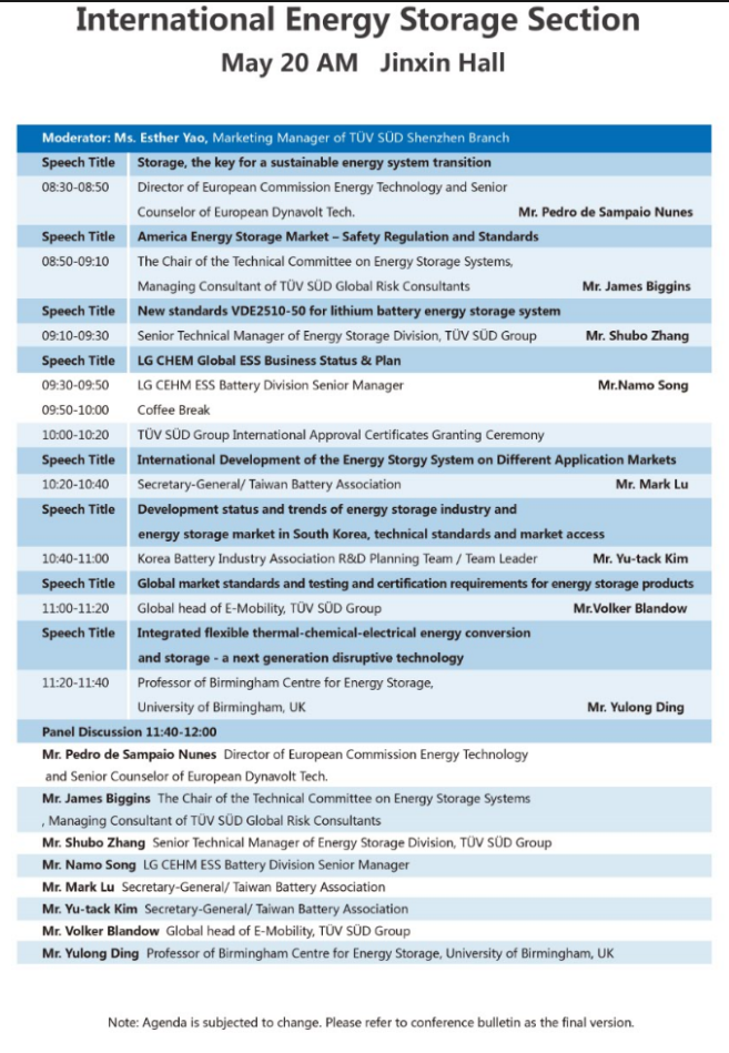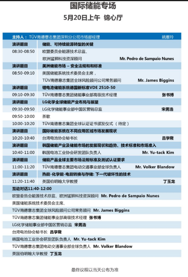 以下為國(guó)際儲(chǔ)能專場(chǎng)大會(huì)議程表。