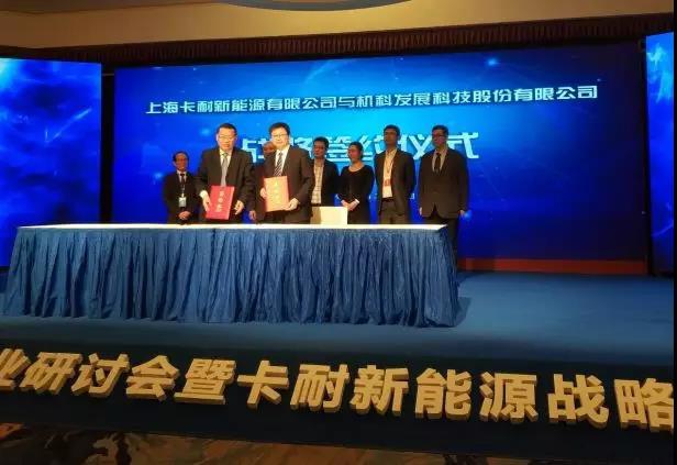 中國儲能網訊:近日,上??托履茉从邢薰境晒εe辦了2018年新能源產業(yè)研討會暨卡耐新能源戰(zhàn)略發(fā)布會。現場,卡耐新能源還分別與上海國際汽車城(集團)有限公司、機科發(fā)展科技股份有限公司簽訂了戰(zhàn)略合作協(xié)議,分別在電池梯次及再生利用、智能制造領域兩大領域與上述兩家單位展開深入合作。