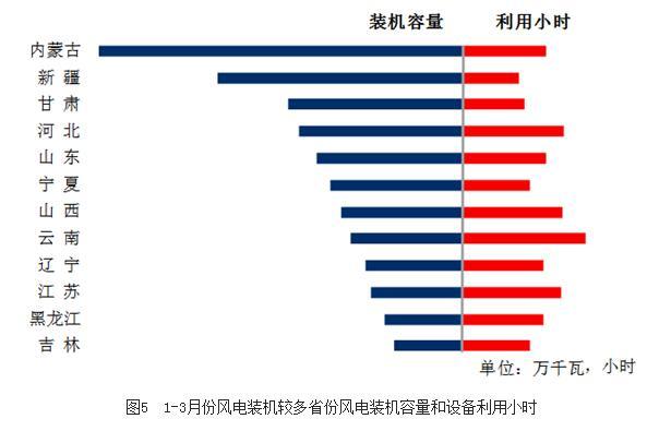 分類型看,1-3月份,全國(guó)水電設(shè)備平均利用小時(shí)為617小時(shí),比上年同期降低6小時(shí)。在水電裝機(jī)容量超過(guò)1000萬(wàn)千瓦的7個(gè)省份中,除湖南和云南同比降低279和56小時(shí)外,其余省份水電設(shè)備平均利用小時(shí)同比均有不同程度增加,其中廣西同比增加165小時(shí);全國(guó)火電設(shè)備平均利用小時(shí)為1089小時(shí),比上年同期增加52小時(shí)。分省份看,全國(guó)共有15個(gè)省份火電設(shè)備利用小時(shí)超過(guò)全國(guó)平均水平,其中陜西和青海超過(guò)1300小時(shí),江西、河北、安徽和甘肅超過(guò)1200小時(shí),云南和西藏分別僅為522和52小時(shí)。與上年同期相比,全國(guó)共有22個(gè)省份火電利用小時(shí)數(shù)同比增加,其中,福建、重慶、云南和湖南同比增加超過(guò)200小時(shí),分別增加299、236、220和205小時(shí),廣東、青海、四川、山西、內(nèi)蒙古、安徽、海南和甘肅同比增加超過(guò)100小時(shí),分別增加158、144、143、137、136、118、118和109小時(shí),而北京、山東、江蘇、新疆、貴州、天津、遼寧、黑龍江和河南同比降低,其中北京和山東同比分別降低142和100小時(shí);全國(guó)核電設(shè)備平均利用小時(shí)1690小時(shí),比上年同期增加59小時(shí);全國(guó)風(fēng)電設(shè)備平均利用小時(shí)592小時(shí),比上年同期增加124小時(shí)。