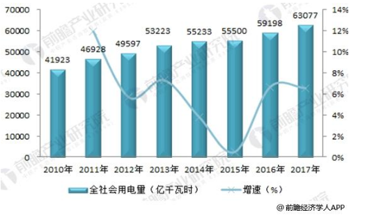 中國儲能網(wǎng)訊:全社會用電量持續(xù)增長 2017年達63077億千瓦時