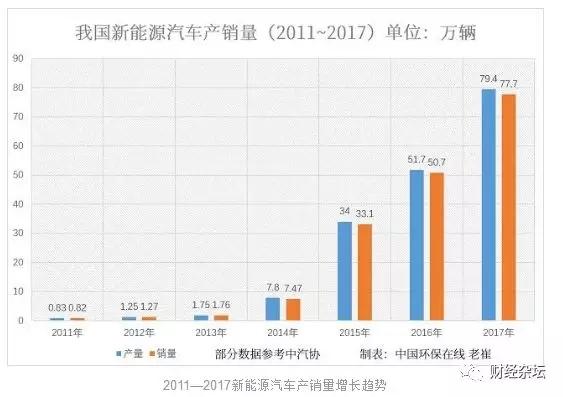 公開資料顯示,中國新能源汽車從2015開始到2017年,連續(xù)3年產(chǎn)銷量位居全球首位。2017年,全球新能源汽車總銷量超過140萬輛,累計銷售突破340萬輛。這一年,中國的新能源汽車產(chǎn)銷分別達(dá)到79.4萬輛和77.7萬輛,同比增長53.8%和53.3%。而截至2017年,我國新能源汽車?yán)塾嬩N量已經(jīng)達(dá)到180萬輛,占全球累計銷量的52.9%。