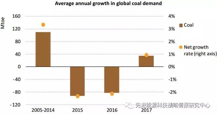 圖3 2005-2017全球煤炭需求變化態(tài)勢(shì)(單位:百萬噸)