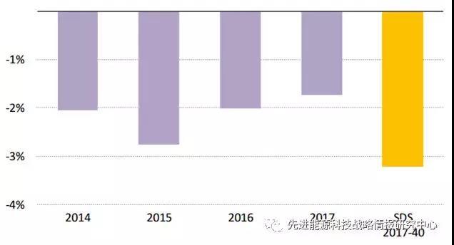 圖6 2014-2040年能效變化態(tài)勢(shì)(SDS-2017-40是IEA 可持續(xù)發(fā)展情景預(yù)測(cè))