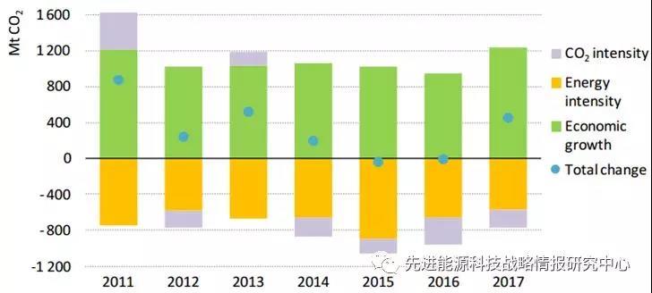 由于能效政策覆蓋面和嚴(yán)格程度降低以及能源價(jià)格長(zhǎng)期低位的影響,2017年全球能源效率的改善顯著放緩,全球能源強(qiáng)度僅降低1.7%,不到“巴黎氣候協(xié)定”承諾設(shè)定目標(biāo)的一半。