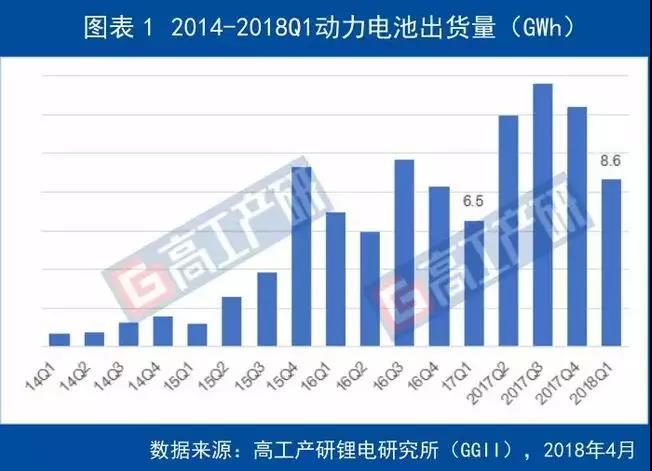中國儲能網訊:高工產研鋰電研究所(GGII)調研數(shù)據(jù)顯示,2018年第一季度中國動力電池出貨量8.6GWh,同比增長32.85%。