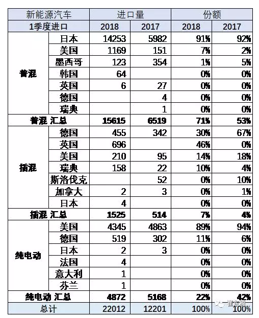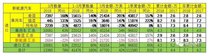 1、18年1-3月進口新能源車表現(xiàn)分化