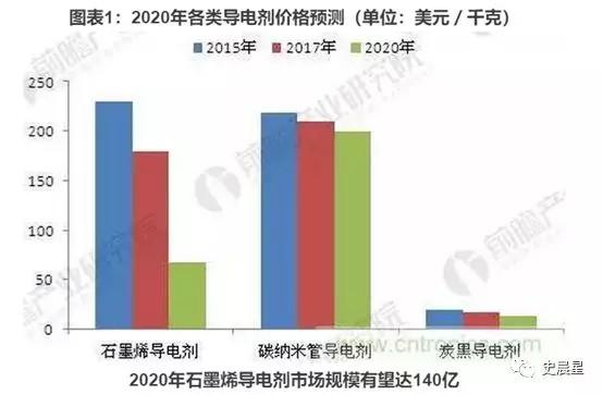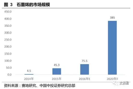 石墨烯作為工業(yè)添加劑,材料本身市場(chǎng)規(guī)模并不大,各機(jī)構(gòu)預(yù)測(cè)到 2020 年石墨烯材料本身市場(chǎng)規(guī)模在 1.5-3 億美元之間,并在 2015-2020 年期間保持 40% 以上增速。