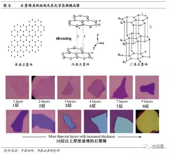 石墨烯按層數(shù)分類,其可分為:?jiǎn)螌邮?、雙層石墨烯和少層石墨烯。石墨烯層數(shù)超過 10 層后,性質(zhì)接近薄層體石墨。