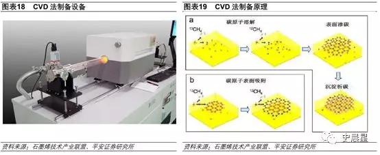 在制備技術(shù)層面,氧化還原法與物理剝離法常被用作制備石墨烯粉體,而化學(xué)氣相沉積法與外延生長(zhǎng)法常被用作制備石墨烯薄膜。