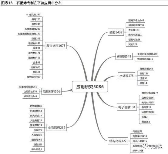 專利研究方向主要集中于石墨烯的制備以及應(yīng)用研究,應(yīng)用研究中以復(fù)合材料和儲(chǔ)能最多,其次是功能材料與傳感器。