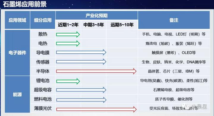 綜合考量石墨烯在各個(gè)下游領(lǐng)域的技術(shù)研究迚展、政策引導(dǎo)方向以及下游市場(chǎng)的接受度,我們認(rèn)為石墨烯產(chǎn)業(yè)爆發(fā)點(diǎn)已初步形成,未來將逐步在各個(gè)細(xì)分領(lǐng)域分階段釋放。