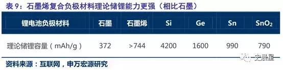石墨烯是由單層碳原子緊密排列構(gòu)成,鋰離子不僅可以存儲(chǔ)在石墨烯片層的兩側(cè),還可以在石墨烯片層的邊緣和孔穴中存儲(chǔ),其理論比容量為740~780mAh/g,為傳統(tǒng)石墨材料的 2 倍多,但遠(yuǎn)低于硅 4200 mAh/g,目前主流方向是硅碳負(fù)極。