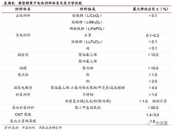 石墨烯的力學(xué)性能制作柔性基體使得鋰電池具備彎折、拉伸、甚至扭曲、折疊等功能,通過加入可以承載活性物質(zhì)的柔性基體,實(shí)現(xiàn)鋰電池的可彎曲性。