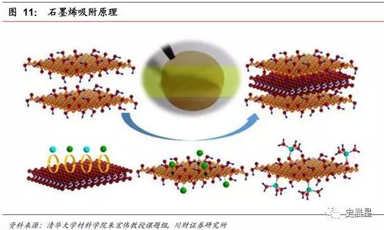 石墨烯的薄層結(jié)構(gòu)使其具有巨大的比表面積,對(duì)固體、氣體、離子都有著很高的吸附容量。