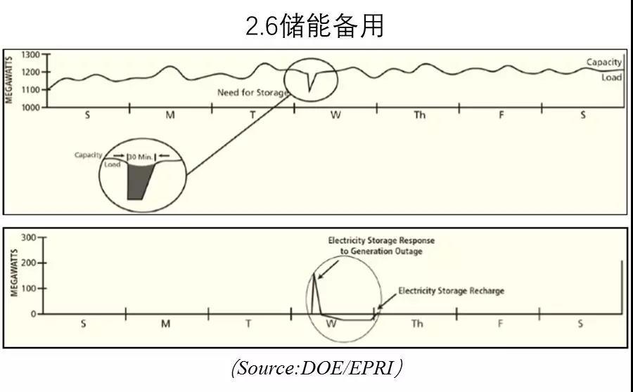 常規(guī)備用發(fā)電廠需要保持在線和運(yùn)行狀態(tài),而儲(chǔ)能電站作為備用不需要放電,只用在需要時(shí)放電即可。