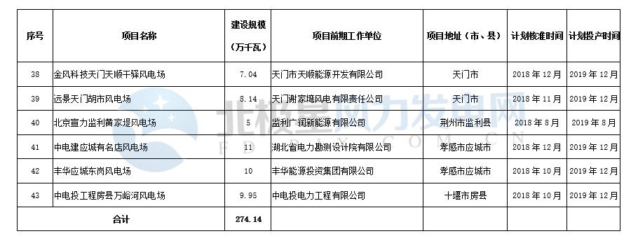 一、根據(jù)各市、州報送的2018年風(fēng)電開發(fā)建設(shè)方案,經(jīng)相關(guān)企業(yè)再次確認,在統(tǒng)籌考慮全省風(fēng)電開發(fā)建設(shè)情況、資源狀況、電力市場消納情況、項目前期工作推進情況等因素的基礎(chǔ)上,確定將協(xié)合荊門大泉風(fēng)電場二期等43個項目、總裝機容量274.14萬千瓦列入2018年湖北省風(fēng)電開發(fā)建設(shè)方案。