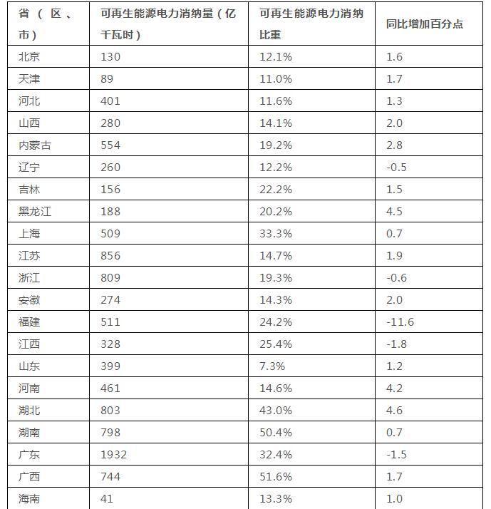 二、各?。▍^(qū)、市)可再生能源電力消納情況