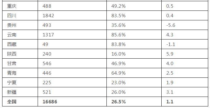 四川。2017年,全部可再生能源電力消納量為1842億千瓦時,占本省全社會用電量的比重為83.5%;非水電可再生能源電力消納量為73億千瓦時,占本省全社會用電量的比重為3.3%,同比上升1.0個百分點。