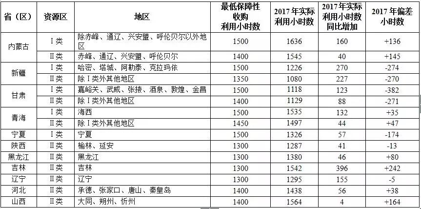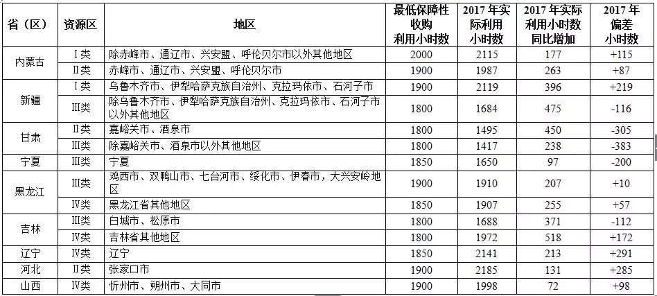 新疆Ⅲ類資源區(qū)、甘肅、寧夏、吉林Ⅲ類資源區(qū)未達(dá)到風(fēng)電最低保障收購年利用小時數(shù)要求。