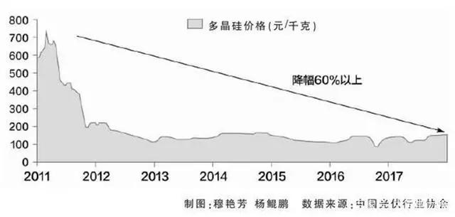 數(shù)據(jù)顯示,截至3月底,多晶硅最低報價已降至115元/千克。多晶硅片已降至3.6~3.7元/片,單晶硅片已降至4.3~4.5元/片,組件價格在2.5~2.6元/瓦左右。