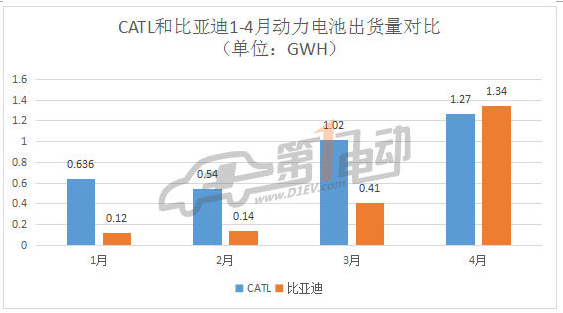 4月比亞迪動(dòng)力電池出貨量超越CATL重回第一