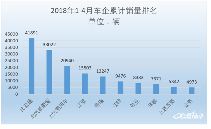 根據(jù)乘聯(lián)會(huì)數(shù)據(jù),2018年4月比亞迪新能源銷售13392輛排名第一,同比增速116%,1-4月累計(jì)銷售41891輛,是截至目前2018年銷量榜單冠軍企業(yè)。