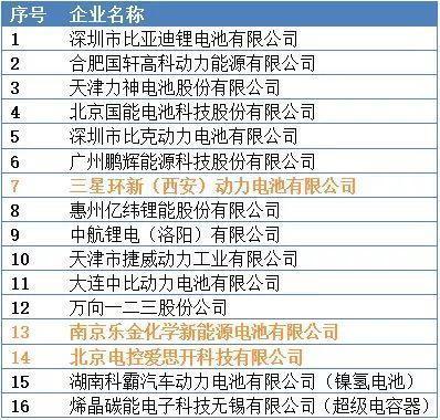 汽車(chē)動(dòng)力蓄電池行業(yè)白名單(第一批)