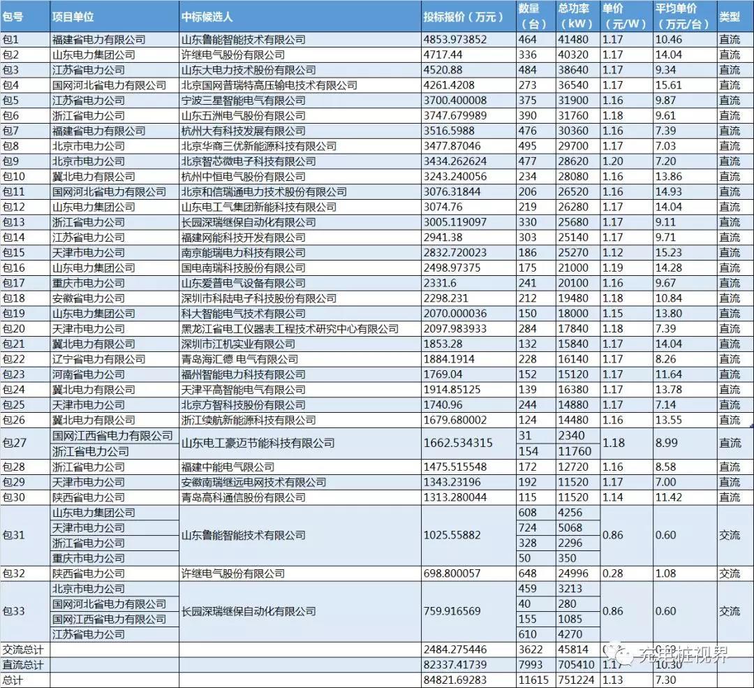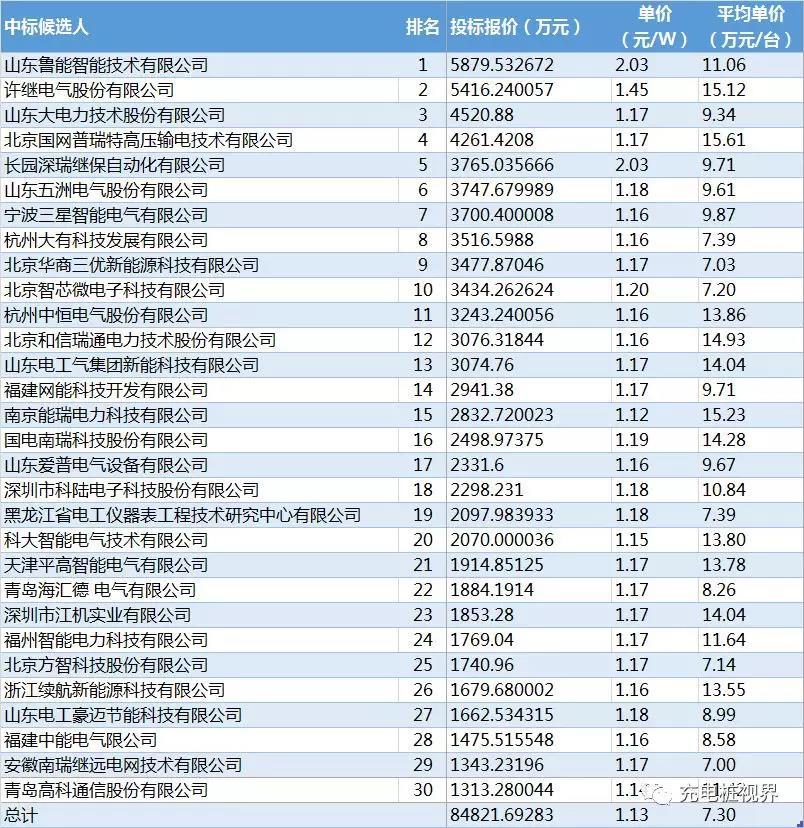 中國儲能網(wǎng)訊:昨天,國家電網(wǎng)公布了2018年電源項目第二次物資(第一次充電樁)招標采購采購中標人信息,本次招標共有30家公司幸運中標,中標總額約8.48億。下面我們看一下具體中標情況。