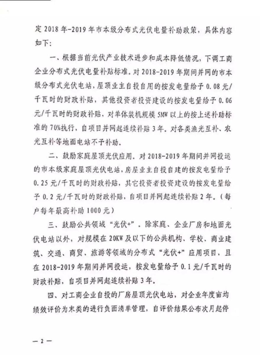 中國(guó)儲(chǔ)能網(wǎng)訊:6月4日,嘉興發(fā)布了《關(guān)于進(jìn)一步實(shí)施嘉興市本級(jí)分布式光伏電量補(bǔ)貼政策的通知》,明確提出鼓勵(lì)家庭屋頂光伏應(yīng)用,對(duì)2018-2019年期間并網(wǎng)投運(yùn)的市本級(jí)家庭屋頂光伏電站,房屋業(yè)主自投自建的按發(fā)電量給予0.25元/千瓦時(shí)的財(cái)政補(bǔ)貼,其它投資者投資建設(shè)的按發(fā)電量給予0.2元/千瓦時(shí)的財(cái)政補(bǔ)貼,自項(xiàng)目并網(wǎng)起連續(xù)補(bǔ)貼2年。(每戶每年最高補(bǔ)助1000元)。