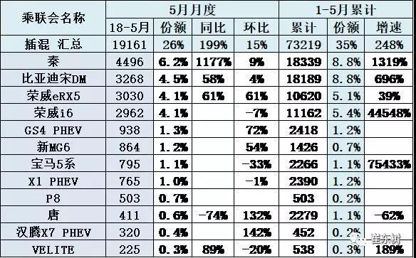 插混車型18年1-5月的很好,成為表現(xiàn)最強(qiáng)的動(dòng)力類型。